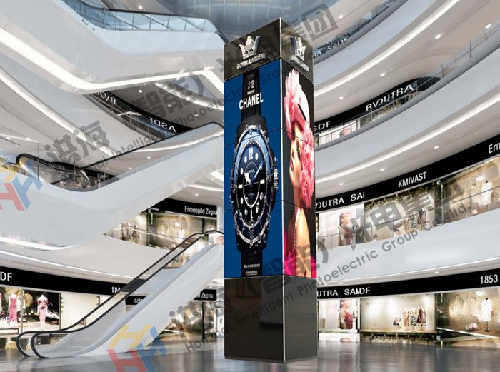 LED旋轉(zhuǎn)屏以靈活多變的旋轉(zhuǎn)姿態(tài)吸引著人們的注意,其結(jié)構(gòu)整體為三角柱體形狀,中間視頻顯示部分由三層三角形LED箱體構(gòu)成。在旋轉(zhuǎn)系統(tǒng)的控制下,三個(gè)led屏體相互配合,旋轉(zhuǎn)動(dòng)作與視頻畫面協(xié)調(diào)運(yùn)作,三面共九個(gè)小led顯示屏可單獨(dú)播放視頻,也可拼接為三個(gè)視頻或?qū)⑷嫒龑覮ED拼接為一個(gè)整體視頻播放。動(dòng)態(tài)屏幕與視頻畫面完美結(jié)合,為人們帶來震撼的視覺沖擊力,進(jìn)而促進(jìn)投放戶外廣告的有效傳播。