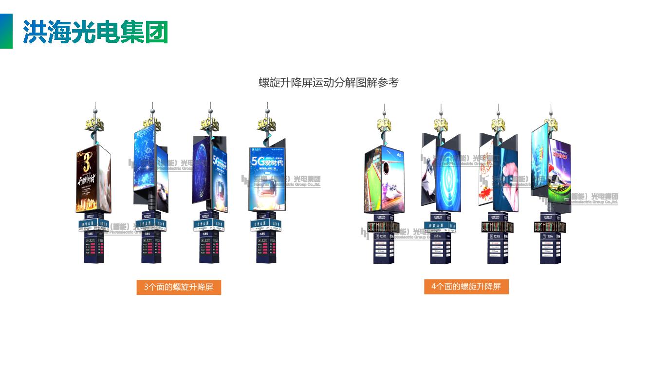 簡單來說就是由三個led顯示屏組成,每個顯示屏都可以獨立上下升降,也可以360度整體旋轉(zhuǎn)同時播放視頻動畫。和畫面互相配合,是集機械力學(xué)、工業(yè)編程和視頻編輯多種功能于一身的新型廣告媒體。