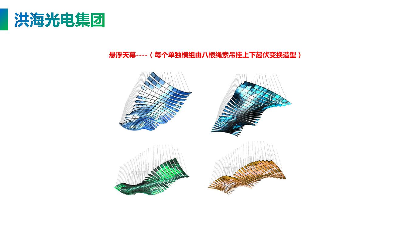 LED天幕可以根據您的要求定制為平面led天幕,弧形led天幕,異形led天幕等各種造型,并根據LED天幕的平方數與視覺距離確定LED天幕的像素,相應的像素越高,畫面越清晰,專業的設計師為您設計專屬您的led天幕。為您提供從設計led天幕效果圖,到生產制作,鋼構圖紙設計,鋼構制作,現場安裝調試一條龍服務,為您解決后顧之憂!